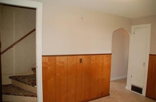 This house is NOT a drive by! Great cape with expansion possibilities on 2nd floor. Old world charm with arched doorways to Living room & Kitchen. Interior of the first floor newly re-painted. HWs on 1st floor have been refinished. New vinyl flooring in Kitchen, hallway & bathroom. Great backyard - could be easily fenced in. 1 Car garage - attached. Easy access to Highways. Windows in need of TLC. Fireplace never used. Estate sale.