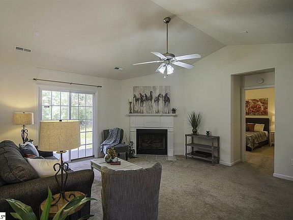 BACK ON THE MARKET...Buyer Financing Fell Through! Easy single level living at its finest. This very cute 3 bedroom patio home is conveniently located just minutes from I-385 and Woodruff Rd. Enter through the large foyer with wood floor and you will find two bedrooms with large closets and a full bath to the left, and the living room straight ahead. The large living room features a vaulted ceiling, fireplace with beautiful mantle and gas logs, as well as a patio door to the backyard patio. Off the living room you will find the kitchen with sleek black appliances and an abundance of natural oak finished cabinets. The pantry closet and separate laundry closet is conveniently located just off the kitchen. Open to the kitchen you will find the bright, inviting dining area with two windows overlooking the front yard. The access door to the garage is also located directly off the kitchen, making bringing your groceries inside very convenient. Around the corner from the kitchen you will find the large master suite, featuring a trey ceiling, large walk in closet, and a full bath with tub/shower combination. This home also features a two car garage, a concrete patio, a back yard overlooking a wooded area, and other desirable features making this home the ultimate in affordable, convenient, single level living. Schedule an appointment to see this beautiful home today