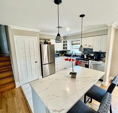 Welcome to this updated 4 bedrooms 3 modern bathrooms split level home, step inside and feel the flow of the open floor plan perfect for entertaining, the full kitchen with island and SS appliances, granite counter top is anchored to the well sized brand new deck and covered patio is ready for anything from morning cup of coffee to holidays gathering. Hardwood floor and tiles add timeless style throughout, while 2 zone central air keeps every season comfortable. The tastefull finished basement has a sized summer kitchen, laundry and play room that leads to the outdoor gazebo. the concrete stamped patio, oversized backyard with fireplace is your new favorite spot for bbq or s'mores or either simply unwinding at the end of the day. parking space for over 4 cars, plenty of closets and storage, thoughtful updates makes this home charming and convenient with everyday comfort. Property being Sold strictly "As IS".