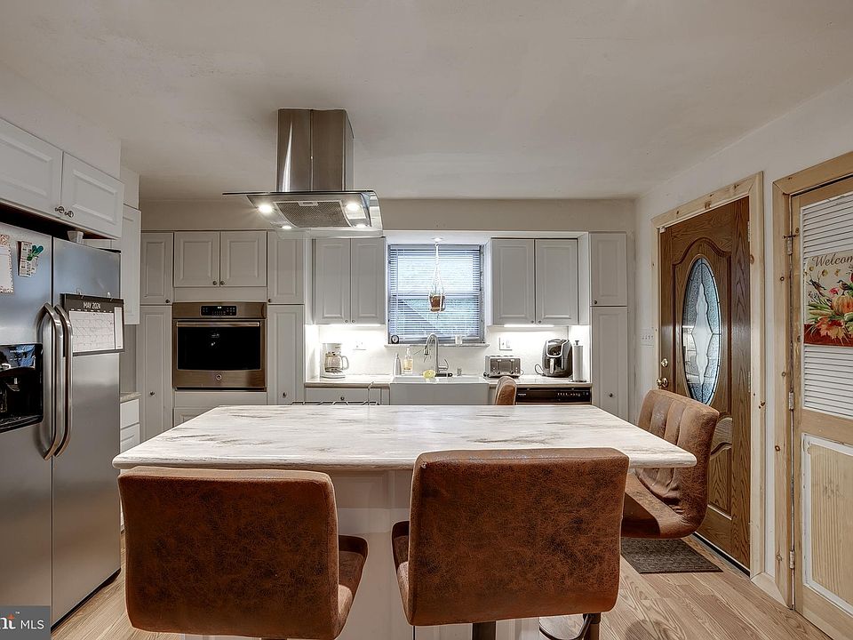 Welcome to the wonderful community of Medford Farms where this exquisitely rehabbed rancher, a single-floor gem beautifully updated in 2017. This home harmoniously blends modern amenities with timeless charm, offering the perfect retreat for those seeking both comfort and elegance. As you approach the home you’ll be impressed by the meticulously maintained park like setting exterior featuring plenty of trees and open land, a newer roof ensuring you peace of mind while also providing you with longevity. Step inside the front door to discover the family room which has an inviting open floor plan enhanced by recessed lighting and natural colored laminate flooring which would go well with any decor. The heart of the home is undoubtedly the family room area where a stunning stone floor-to-ceiling woodburning fireplace serves as a dramatic focal point in the spacious living area. This cozy feature is perfect for gathering around on chilly evenings, adding warmth and character to the living space. The updated kitchen featuring a central island equipped with a gas cooktop and electric outlets makes this area multifunctional, convenient and yet perfect for casual dining and a great culinary workspace. Above the island/cooktop you will see a beautiful state of the art range hood. Modern cabinetry and a built in wall oven along with stainless steel appliances & double sink add to the kitchen's appeal, making it functional as is stylish. Immediately to the left side of the family room you will find your 1st full bathroom designed with a natural maple cabinetry, ceramic tiled floors and floor to ceiling ceramic tiled tub surround. When you come to the master bedroom you will see that the bedrooms have blonde wooden closet doors, laminate floors and a California styled closet making it perfect for keeping your personal belongings well organized. The bathrooms are thoughtfully updated, with the main bathroom featuring a seamless shower equipped with a handheld showerhead, ceramic tiled floors, updated vanity & mirror providing you with beauty & functionality, the home includes a dedicated laundry room, streamlining household chores. The floors which are a tasteful combination of tiled and laminated surfaces, chosen for their durability and ease of maintenance. One of the key updates made during the 2017 renovation is the installation of a new septic system, ensuring efficient waste management for years to come. This upgrade, along with the newer electrical and heating systems, underscores the home's readiness for modern living. Situated on a sprawling 2-acre lot, this property offers plenty of space for outdoor activities, a custom deck with concrete patio below, fire pit and pond, you have plenty of room for gardening or to simply sit back & enjoy the tranquility of your private oasis. The expansive yard provides endless possibilities for customization, whether you envision a lush garden, a play area, or even space for additional outbuildings. You also have a long driveway and plenty of parking for all your friends and family when you are ready to entertain. Come by for your personal tour & make this one yours today!