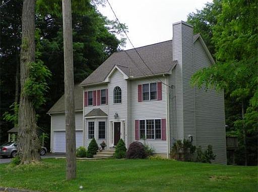 Wonderful Colonial built in 2004 offers space,charm,bells & whistles,and a nice price too!Nicely situated on a 3/4 acre private lot in an established neighborhood,with peaceful Nature right in the backyard of this fab home - yet you'll enjoy easy access to our area amenities,restaurants,shopping,highways.Lovely & cozy Living Rm w/ hardwd flooring and a gas fireplace is a perfect place to curl up with your favorite book.Spacious Formal Dining Rm also boasts hardwd floors,along with a bow window & custom window treatments.Nicely planned working Kitchen open to casual Dining area and Family Room - w/ more wood flooring & sliders to raised deck with relaxing views.Four generously sized Bedrms - including a large Master Bedrm w/ MasterBath & walk-in closet.Lower level walk-out features a wonderful 2nd FamilyRm (or Media Rm) - also w/ sliders to yet another deck and the backyard.CAIR.Gas Heat. Lovely decor thru-out, w/ custom blinds & window treatments - all a bonus for YOU the lucky buyer!!