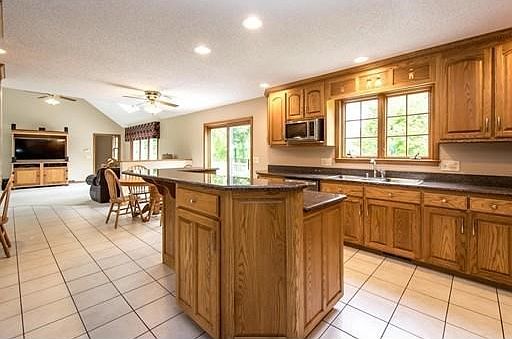 - Kit Dscrp: Dining Area, Countertops - Stone/Granite/Solid, Deck - Exterior, Flooring - Stone/Ceramic Tile, Kitchen Island, Stainless Steel Appliances, Open Floor Plan, Recessed Lighting, Countertops - Upgraded, Remodeled, Exterior Access, Gas Stove
