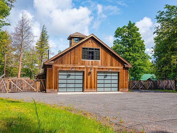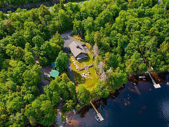 Welcome to Big Tupper Lake's modern barn style home, a stunning property built in 2019 that offers a unique blend of rustic Adirondack charm and contemporary elegance. Situated on over an acre of land, with an impressive 150 feet of waterfront access, this home provides an idyllic retreat for those seeking tranquility and natural beauty. Designed with both comfort and style in mind, this home features two bedrooms and three baths, providing ample space for relaxation and privacy. The master suite offers a serene sanctuary, complete with an en-suite bathroom and picturesque views of the surrounding landscape. One of the standout features of this property is the two large garage bays provide plenty of room for storing boats, snowmobiles, and other recreational vehicles, allowing for year-round enjoyment of the great outdoors. Conveniently located just a short drive away from Tupper Lake's downtown area including charming local shops and delicious restaurants. An ultimate retreat!