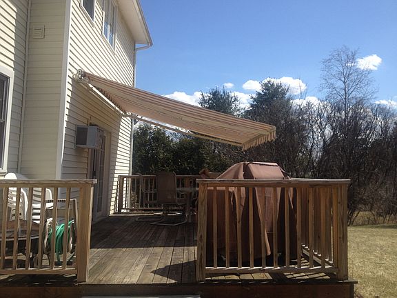Lovely Colonial - 4 bedroom, 3.5 bath, 2,440 SF house with large backyard surrounded by a privacy fence of evergreens and recently built large back deck with electric awning. Great open backyard with storage shed. Covered front porch with 2 car attached garage, vinyl siding. Brazilian cherry hardwood floors. Large master suite with walk in closet, gas fireplace, skylight, and spacious ceramic tiled master bathroom with jetted tub, standing shower, and composite deck overlooking Mount Mansfield. Another large bedroom has it's own private full bath. Washer and dryer room on 2nd floor with easy access from the bedrooms. Stainless steel appliances in the kitchen with great light and plenty of storage space. Large basement with built in shelves for storage, insulated and ready to finish. Solar panels installed in 2015, so practically no electric bill. Great neighborhood close to the Essex Outlet, Indian Brooke Reservoir, and a short drive to the Interstate. A wonderful home, that is even more beautiful in person.