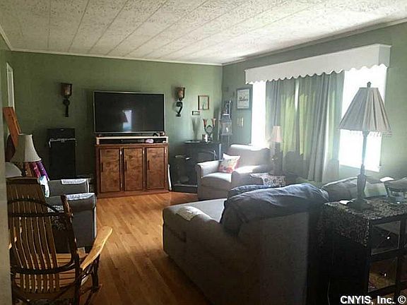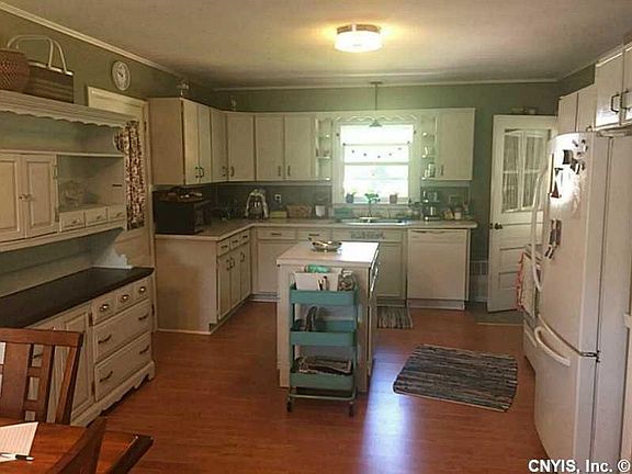 MOTIVATED SELLER for this charming 3 bedroom ranch home on half an acre in quiet neighborhood. The home has a garden area, fruit trees, rhubarb and raspberry bushes galore making it the right mix of country and village living. Metal shed for storage and heated workshop. Updates in the past five years include, completely new bathroom with jetted tub, refinished hardwood floors in living room and hall, new floor in kitchen, new windows with lifetime warranty. The rear covered porch leads out to a stone patio for entertaining and built in fire pit. One garage, full basement.