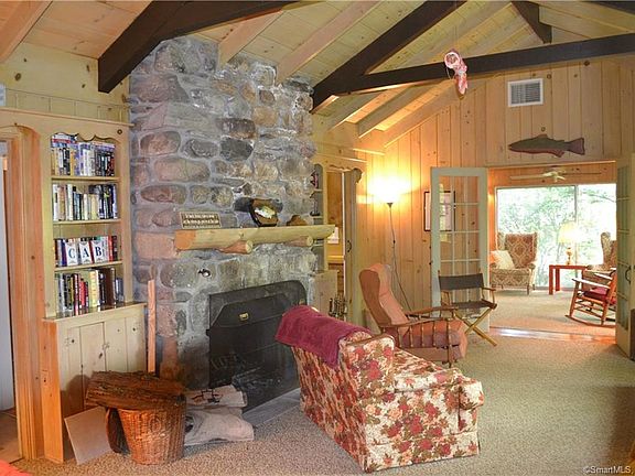 Relax your day away in this charming lake home in sought after "Chimney Point", located in Candlewood Lake Club, A private community on beautiful Candlewood Lake that offers golf, tennis, marina (boat storage), sandy beach with lifeguard, kids camp and so many more amenities to enjoy. This 3 season home has so much charm, privacy, and a serene picturesque setting with lake views. Enjoy the amenities the club has to offer, or choose to just relax and enjoy them at some other time. You do not have to join the club and can choose to join if you wish anytime you would like after!! A beautiful stone fireplace graces the living room, eat-in kitchen, master bedroom with full bath, sunroom with dining area and sliders, stone terrace with views of Candlewood Lake and central air. Lake living at its best! Come and enjoy the peaceful and quiet surroundings of this private retreat situated on almost a half acre of land!! House to be sold "As Is"