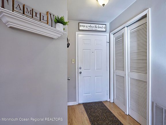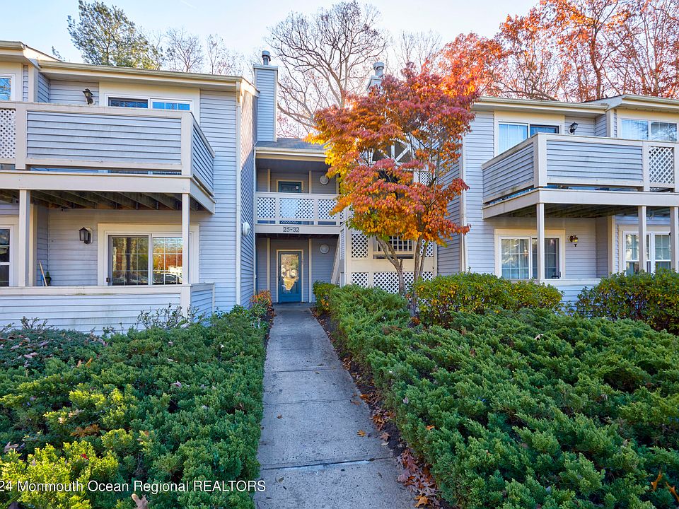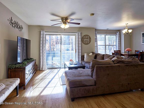 Welcome to this 2 bedroom, 2 full bathroom, lower level unit in desirable Point O'Woods. As you enter the home, your attention is drawn through the sliding glass doors to the wooded tree line beyond your private patio. Imagine taking a moment or two to relax on your covered patio looking at this mesmerizing view! The kitchen boasts cherry cabinets, and newer stainless steel appliances including a Frigidaire Refrigerator, GE gas range, dishwasher, and Kenmore microwave. Enjoy your meal at the counter or in your dining room adjacent to the living room. Smart lighting and a Nest Thermostat allow access to your lights and home temperature from anywhere using your phone! A great energy saver! The sliding glass doors provide plenty of natural light. A newer GE stackable washer and dryer make doing laundry so convenient. The primary bedroom has a large closet and attached full bathroom. The custom shower glass doors in both bathrooms add a sparkling touch! Community amenities include a pool, tennis and basketball courts and so much more! Located close to public transportation, Route 195, and plenty of shopping along the Route 9 Corridor.