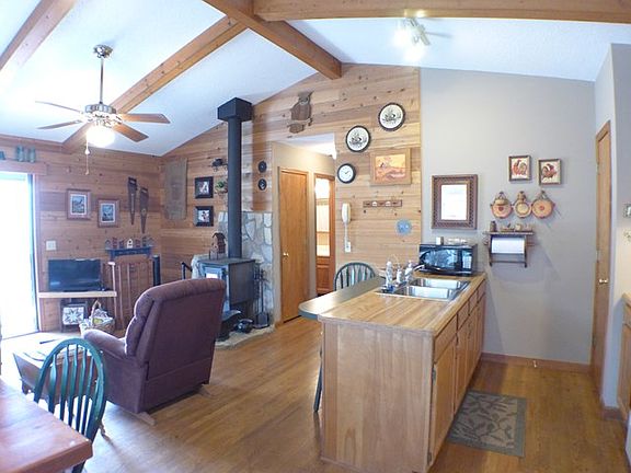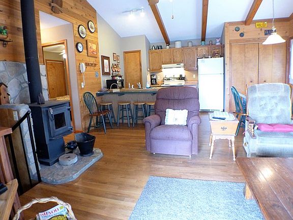 This is just what everyone wants for a mountain cottage. It's neat and clean, and move in ready including the furnishings. As you enter you immediately have a feeling that this cozy cabin will be the perfect mountain get-away for you and your family. There's easy main level access to the entry door, then opening the door you're greeted with an open floor plan with vaulted and beamed ceiling. The kitchen is open to the living room, and a breakfast bar separates the two areas. There are 2 bedrooms and 2 baths on the main level, and downstairs is a family room with additional sleeping space. Although there's central heat & air, it's really great to have a woodstove on the main level to supplement the heat on the cold winter days. Leaving the living room through a set of sliding glass doors takes you to a large rocking chair porch that extends the length of the house. Another smaller covered porch is accessed from the lower level family room. This residence has a nice vacation rental history if you're looking for the opportunity to do the same.
