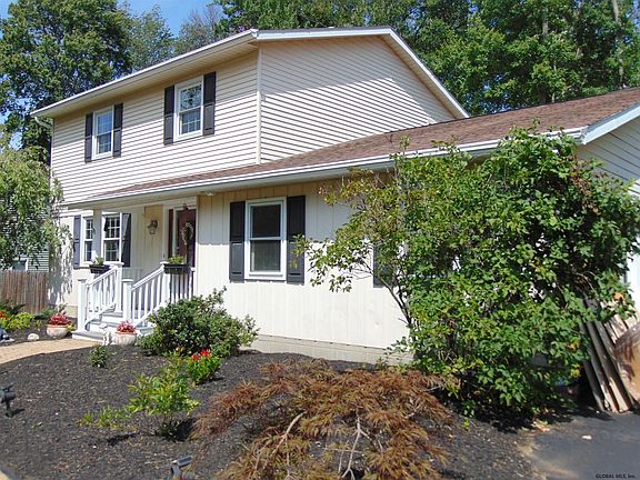 Location, Location, Location. Beautiful Colonial home in the Guilderland School District. Elegant formal dining room open to living room. Freshly painted, spacious eat-in kitchen w/ brand new backsplash. Bay window in kitchen providing plenty of sunlight. Cozy family room with wood burning fireplace. Extra room could be used for office/den or additional bedroom. 3 spacious bedrooms with updated bathroom and walk-in closets, gleaming hardwood floors. New front door and so much more! Basement could be easily finished. Huge deck with swimming pool in this private backyard and perfect for entertaining! Professionally landscaped w/shed. A true beauty!