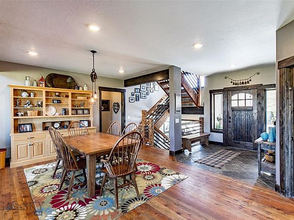 Beautiful custom home on 4.273 acres in Pintail Ridge. This large, 5304 sq ft +/- , family home is situated at the end of the road for added privacy, with amazing views of the Madison Range. Nicely landscaped with trees and a boardwalk leading out to a pond on one of the common areas of the sub division. This 4 bedroom, 3 1/2 bath home has a large kitchen with rustic hickory soft close cabinets with granite counter tops. The two ovens, two dishwashers and 2 refrigerators are perfect for entertaining large groups. There are Alder doors and trim throughout with granite surfaces in all bathrooms and laundry room. Master bedroom is on the main floor with a large walk-in closet, double sinks, soak tub, and walk-in tiled shower. The upstairs is a large loft with room for a office or play area with an additional two bedrooms and a guest bath. The walk-out basement has the fourth bedroom and a bathroom as well as a large game/family room. UG sprinklers with drip lines keep it all green.