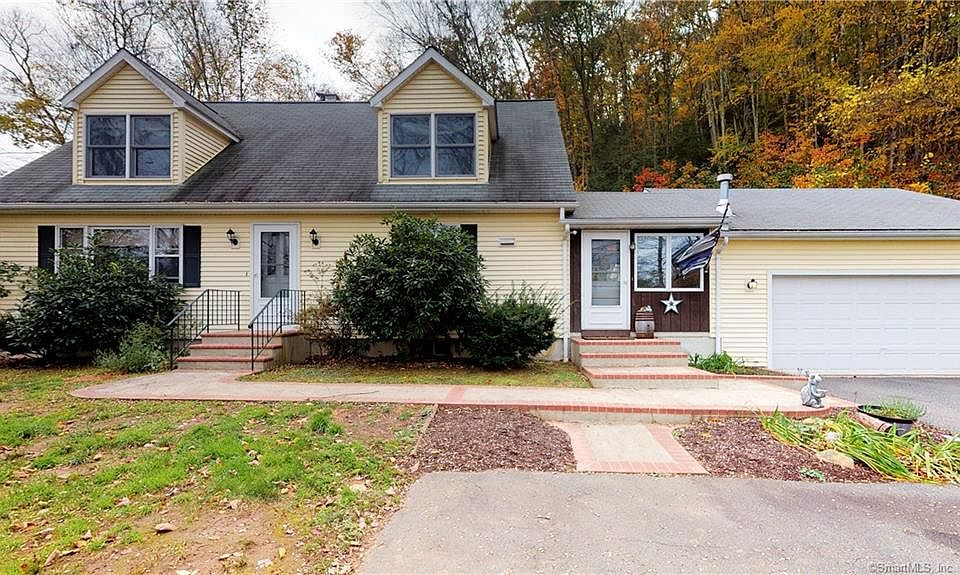 This beautiful Ranch style home was transformed into a Cape in 1993 when the upstairs level was added. Nestled into the hillside making for a very quaint setting and within walking distance of Collinsville Center. When entering, you will see the TLC that is displayed everywhere. The kitchen was completely remodeled in 2006 and boasts custom made cherry cabinets, a center island, Corian counters, tiled back splash, ample cabinet space and prep-space The kitchen opens into the dining room with gleaming hardwood floors windows bringing the outside in as well as a slider that takes you out to the large deck and patio areas. The family room is sure to become your favorite place to gather around a cozy fire, in the rustic fireplace or take in a board game with family and friends. Also on the first floor is a large bedroom with hardwood floors and a full bath just steps away. Upstairs, you will marvel over the oversized master bedroom, offering two closets, cold storage and access to the newly renovated full bathroom (done in the last six months ... but wait there is more - an additional two, generously sized, bedrooms are on the upper level as well. The lower level is partially finished too and could be the perfect man-cave or playroom. The breezeway between the home and the garage has a tiled floor and a Dutch door coming into the house - a great space for pets or a drop zone. The back yard has been tiered and level space added You will surely enjoy having city sewer too