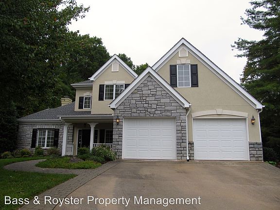 Beautiful South Asheville Home with Bonus Rooms! - Beautiful two-story South Asheville home in desirable Devonshire neighborhood. Master on main and bonus rooms upstairs! Off of the dramatically vaulted foyer is the formal dining room that can accommodate a large dining set. The spacious living room features a gas fireplace and windows looking out on backyard greenery. Beautiful oak hardwoods extend through most of the main floor, except for tile in the baths and neutral carpet in the living room and master bedroom. The kitchen includes a great breakfast nook with access to the backyard patio. Granite counters and bright white cabinets along with recessed ceiling lights and under-cabinet lighting make this an attractive and practical space to prepare meals. Appliances include electric cooktop, double ovens, dishwasher and side-by-side fridge. The main floor master bedroom has a large closet and an oval tray ceiling feature. The en suite bathroom includes double vanities, jetted tub and separate shower. Also on the main floor are the powder room and laundry room with washer and dryer included. Neutral carpeting is throughout the second floor, including the two remaining bedrooms and two bonus rooms! The bonus rooms do not have closets and could be a great office or den. The upstairs full bathroom includes a double-sink vanity. Outdoor spaces include the wonderfully landscaped front and back yards (landscaping included!), with a covered front porch and great back patio. Sidewalks and streetlights are throughout the Devonshire neighborhood. The attached two-car garage has a utility sink and storage closets. Nice wood blinds are throughout. One small pet negotiable. No cosigners. (RLNE1888350)