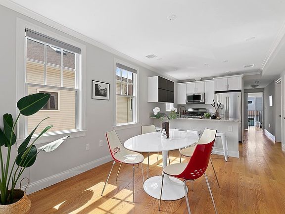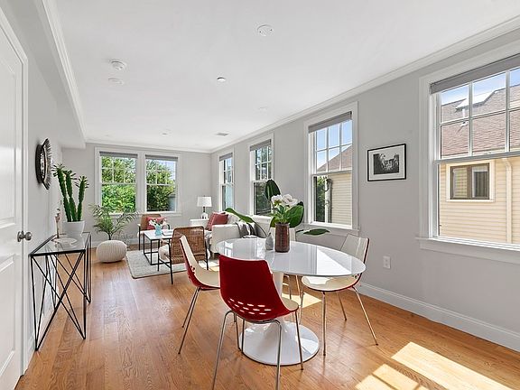 Just blocks from the Minuteman bikeway and coming-soon Magoun Square GLX T Station this light-filled, renovated condo is a knockout! The efficient 7 room layout can easily be used as a 3 bedroom, along with a nifty home office nook. The clean and modern design is highlighted by walls of windows, high ceilings with rich moldings, and gleaming wood floors. The gorgeous kitchen is the focal point of the open plan, with a large eat-in island, quality stainless steel appliances with a gas range, and pantry. The ensuite primary bedroom has a spacious walk-in closet with a custom Elfa system and a lovely tiled bathroom with a walk-in shower. Other standouts include central heating and cooling, in-unit w/d, 1 parking space, additional 73 SF private storage, and a lush common side yard and patio. What’s not to love? Great location only minutes to both Davis and Porter Squares and so many wonderful amenities and commuting options.
