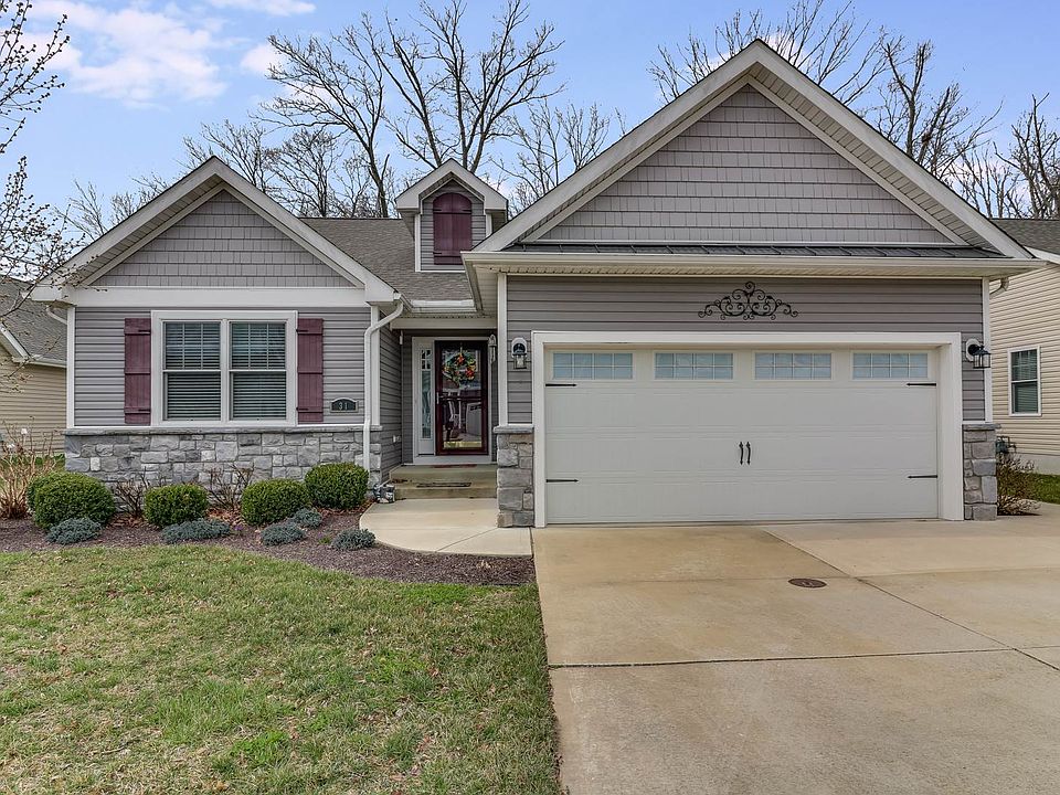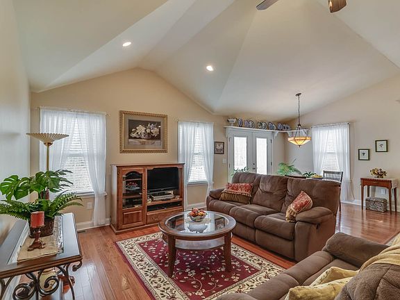 Wonderful 55+ community where you can take a short stroll to pick up groceries, get your hair or nails done and grab a bit of lunch! Easy living included with all of your lawn and landscape needs taken care of! This beautiful home has been lovingly maintained and is ready for it's new owner. The open floor plan includes a spacious living room with hardwood floors, vaulted ceilings & recessed lighting as well as an open kitchen with ample cabinet and counter space as well as a pantry & center island. Upgraded with a tiled backsplash, undermount lighting, recessed lighting and pendant lights over the breakfast counter, this kitchen fulfills all of your needs and then some. The breakfast area overlooks the trex deck and wooded backdrop through the upgraded french doors. The master suite includes a private view of the natural backdrop as well as trey ceilings and a beautiful master bathroom with a dual vanity, room for a party in the tiled stall shower with a large sitting bench and of course a separate commode and a walk in closet! Two guest bedrooms up front are cozy enough for company yet won't encourage long term guests - this is YOUR retirement home! This home also includes a large 9 x 5 laundry room, a 2 car garage, storage room in the attic and a conditioned crawlspace with easy stairway access for even more storage! There are 2 coat closets, a linen closet, an on demand hot water heater, ceiling fans throughout... nothing more to check off but adding your own furniture!