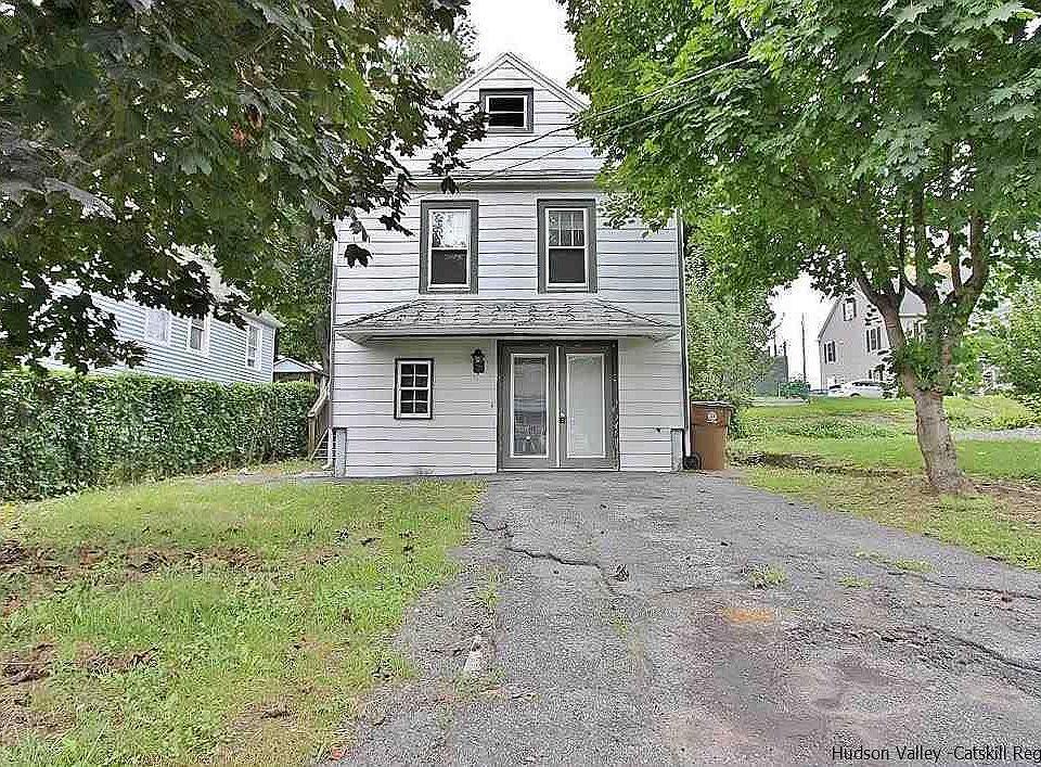 This two story home located in Uptown Kingston is waiting for your vision! Convenient location sited walking distance to Forsyth park, Dietz Stadium, schools, and all the restaurants and shops located in Uptown. This home features French doors, newer tile and laminate flooring. First floor features a large living/dining area, bedroom, and a roughed in bath. Second floor offers a Galley Kitchen with wood cabinets and natural light, bedroom, large bathroom and a living room. Outside provides 2 car parking in the driveway, exterior entry to the upstairs kitchen and small backyard. Please note this is an AS-IS Sale, there may be City Violations please see associated docs for additional info
