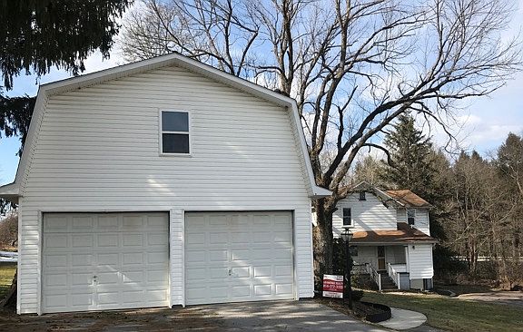 Charming Farmhouse feel with so much potential in need of TLC. Large Rooms, hardwoods throughout, fireplace in Family Room, front porch. Beautiful 1 1/2 acres of property. New 2-car garage with 2nd floor. Being sold "As Is".