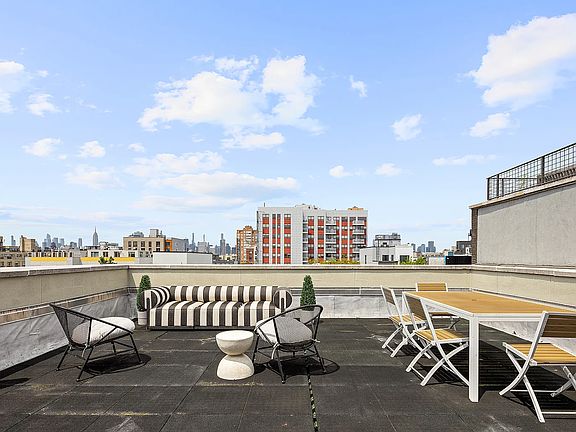 Welcome home to Penthouse R, a 2-bedroom condo featuring a massive private rooftop terrace. 31 Conselyea is situated in the heart of Williamsburg, located one block away from the Lorimer L train stop, and just a short walk to Bedford Ave, McCarren Park and the Northside. Other features of this home are nearly 10-foot ceilings, hardwood floors throughout and stainless steel appliances. Additionally, and arguably the best feature of this home, is the 500-square-foot private roof-deck with striking views that is just one flight up from the apartment. Enter the home and you are immediately greeted by the immense amount of natural light. With dual french doors and transom windows above, the main living space is bright and airy with its four north facing windows. The kitchen features a stainless steel appliance package, and a generous amount of cabinet space. There is also ample space for a proper dining table with seating for six or there is the option to configure the kitchen to feature a large island with bar seating. Opposite the main living space are the two bedrooms of the home. Currently configured as a separate living room and a primary bedroom, and both measuring 9'8" x 11'10", this ideal layout can accommodate a variety of configurations to fit anyone's lifestyle. The new owner has the potential to keep the configuration as is, open it up to have a larger corner living room, or have a one bed plus a separate large home office. The options are endless. PHR also features a four-fixture bathroom inclusive of retro black & white tile, a shower/tub combo and a wood vanity with plenty of under cabinet storage. Hardwood floors, through-the-wall A/C and laundry in the basement are additional perks of the home. 31 Conselyea is a discreet walk-up condominium, conveniently located in the heart of Williamsburg. The building is just one block away from the Lorimer L & G train stop, minutes from Williamsburg's fabulous array of restaurants and bars, and just a short walk to McCarren park. Residents of the building also benefit from super low monthly taxes and common charges.