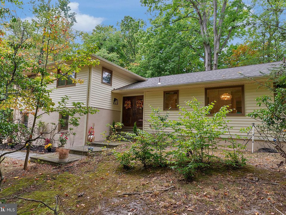 Set within a wooded area, this three-bedroom home offers a perfect balance of modern amenities and timeless charm. The spacious layout effortlessly combines formal and casual living spaces, creating a home that's both functional and inviting. The living room’s wood-burning fireplace provides cozy ambiance, perfect for relaxing or hosting gatherings during cooler months, while large windows flood the space with natural light and offer serene views of the backyard. The dining room is highlighted by a crystal chandelier and large picture window that frames the outdoor scenery. French doors in both the living and dining rooms enhance the seamless indoor-outdoor flow, allowing easy access to the slate patio for alfresco dining or simply enjoying the tranquil surroundings. The adjacent kitchen is fully equipped with Kitchen-Aid and GE appliances, and features an eat-in breakfast area with large picture window, providing the perfect spot to enjoy meals while basking in natural light. A built-in writing desk/work station is conveniently tucked into the kitchen, providing space for managing household tasks or working from home. The expansive family room, complete with built-in bookshelves, luxury vinyl plank flooring, and sliding glass doors that access the backyard make this space perfect for both relaxation and entertaining. Upstairs, off the large landing, three bedrooms are all generously sized and feature hardwood floors. The primary bedroom is a true retreat, with its substantial size and three closets, including one walk-in. The recently upgraded en-suite bathroom features gold fixtures and marble tiles, creating a spa-like atmosphere. The full hall bathroom has also been upgraded, offering modern finishes and plenty of space for family and guests alike. The large unfinished basement provides ample room for storage and the potential to be finished into additional living space. Within walking distance to local businesses and schools, along with its blend of updates and classic features, 31 Cooper Run Drive is a true sanctuary. The surrounding natural environment, with its foliage and wildlife, provides a peaceful and private setting, while the home's thoughtful design makes it an ideal retreat for modern living. Located close to Cherry Hill East High School, Beck Middle School, houses of worship, Fox Hollow Swim Club, and the popular shops and dining in Cherry Hill, Marlton, and Voorhees.