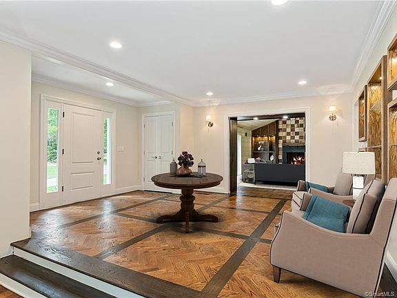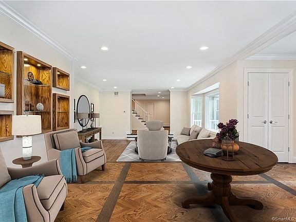 Stunning renovation and addition made to this spectacular Colonial/Cape located on a wonderful Cul de Sac in Central Woodbridge!! Once you step inside this grand foyer you will appreciate the quality craftmanship and high end finishes used to make this 5 bedroom home feel like new construction. Relax and enjoy a fire in the beautiful family room which features a vaulted ceiling, a fireplace & a built-in wet bar. The step down living room offers wonderful space to enjoy time with friends & family. An amazing new chef's kitchen with a large center island, quartz countertops, a wine cooler & new high end stainless steel appliances opens to a very comfortable dining room with fireplace. Wonderful space for both indoor & outdoor entertaining! The first floor also features a spacious master bedroom w/a separate sitting area, a walk-in closet, renovated bath with whirlpool tub and dressing room. The first floor also features a second bedroom, 2 additional full baths and a paneled library. The second floor was expanded and completely renovated and offers 3 additional bedrooms, a loft area, a large laundry room and 2 full baths. The lower level offers approximately another 1000 square feet of recreation area! Some of the improvements include: a new roof; new windows; new Hardi-plank siding; a new front porch; renovated kitchen and baths; a new mudroom with built-ins off the garage. Convenient access to Yale, downtown New Haven, Route 15 and Route 8. Award winning school district!