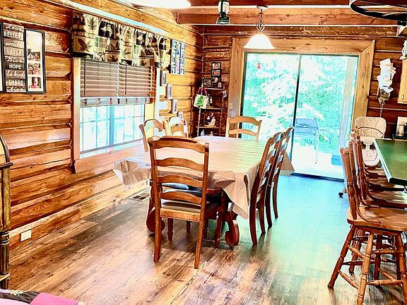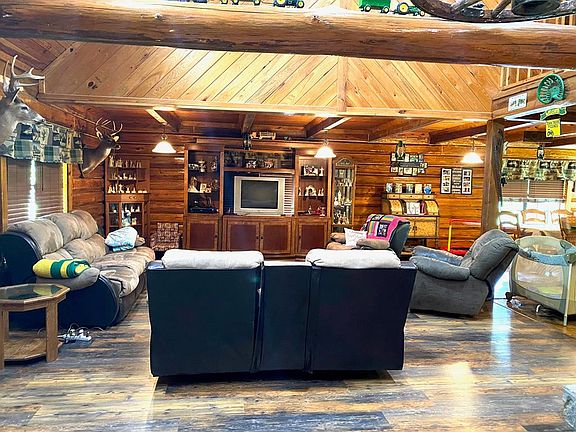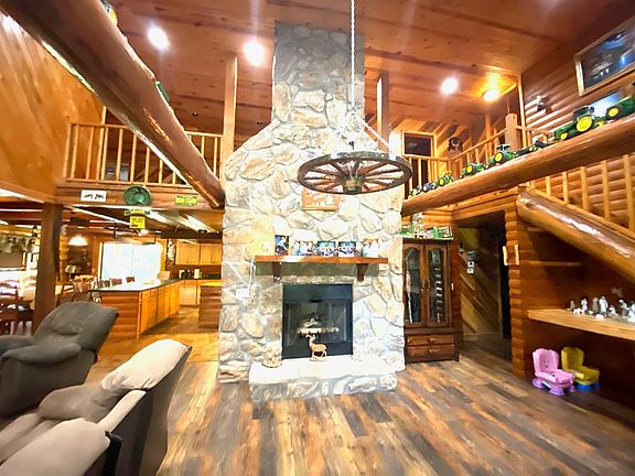Beautiful Log Home sitting on 15.88 ACRES overlooking Pond! Magnificent wrap around porch with views in every direction! Interior wood beams and huge stone fireplace are incredible . Home is open and spacious with plenty of space for family dinners. Kitchen has island and breakfast bar. 2 Bedrooms on 1st floor and 5th bedroom could be office or exercise room. If you want peace and quiet come take a look!
