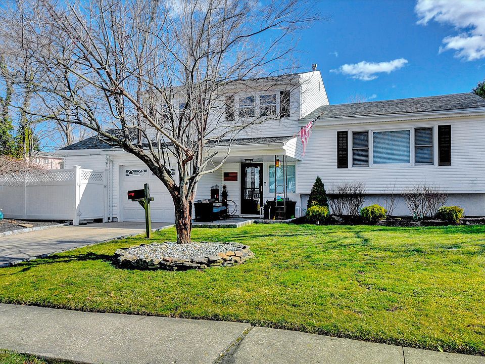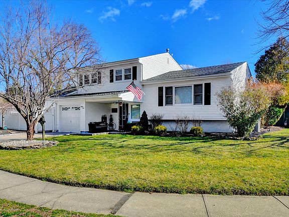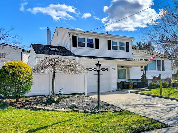 Search no further! Located in highly desirable Marc Heights this corner unit's curb appeal is matched inside and out. 1st flr has upgraded to include lg BR, Fam rm w/engineered HW, wd burning stove, full Ba; easily used as inlaw suite. 1/2 garage can still store plenty. 2nd flr Liv Rm boasts Vaulted ceiling, wd flrs and Bay windows. Din rm w/adjacent Kitchen and sliding dr leading to XL deck. 3rd Flr has 3 add'l BR's and full Ba. Home faces South so fenced pool w/new custom cover get sun all day, covered pergola is surrounded by landscaping and still has open space, perfect home/yard for entertaining. Extras include smart-sprinkler system, trans warranty on appl's, energy efficient new insulation throughout, security system and more. Conveniently located near shopping, schools, and NYC transportation!