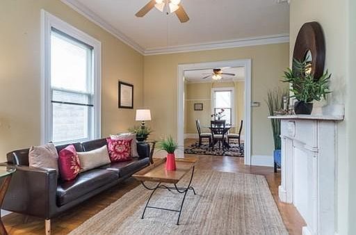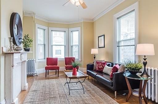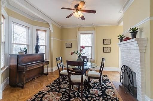 Perched high above Hyde Square, this unique Victorian home enjoys expansive views over Jamaica Plain. Charming original details intact such as parquet wood floors, decorative mantel, wood fireplace and hi ceilings. 2015 updated eat-in kitchen flows through glass slider to magnificent rear deck with built in bench. Perfect spot to enjoy an inspiring Boston Sunset or relaxing summer gathering. Fenced-in back yard with fresh sod. 2014 new roof, 2011 heating system, newer windows. Parking in two car detached garage. Master bedroom offers walk-in closet. Office or 4th bedroom option with deck. Bonus, finished attic contains 3rd bedroom and ample storage. Additional sq ft in finished basement with bathroom and walk-out access to rear patio. Minutes to Whole Foods, T, Hyde Square restaurants and close to Longwood Medical. Offers due 4/22 @ 1pm