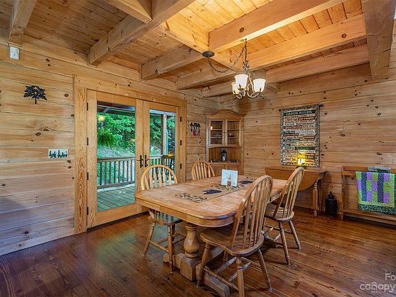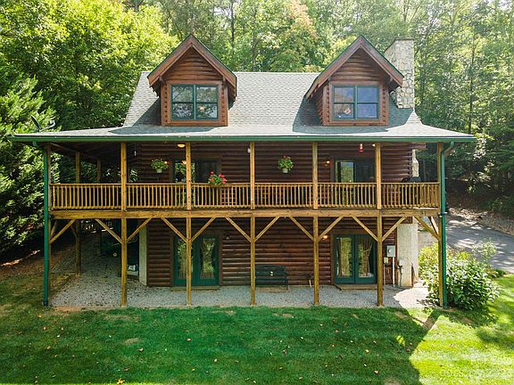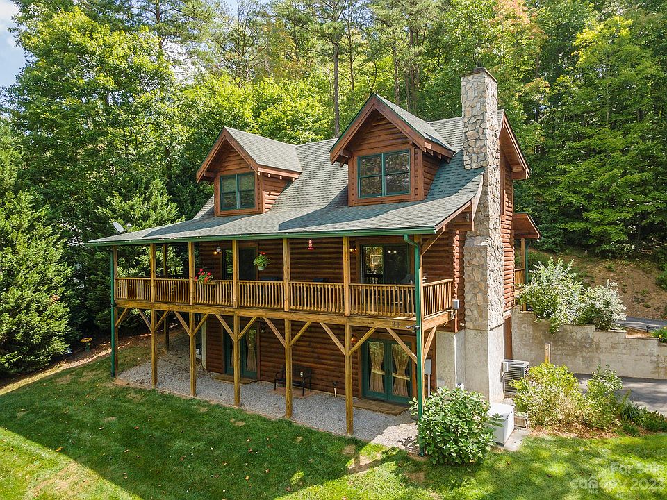 Impressive modern rustic log cabin on private .75 Acre lot in Forest Creek neighborhood in Candler, minutes from Asheville. NO CITY TAXES! 2 BR,2.5 BA 1.5 story LOG CABIN. Family room on lower level w/ WIC and 1/2 bath is currently exercise room. Could be used as a 3RD BR. Primary BR can be on Main or Upper! Designed by Fireside Log Homes with D-Log Style, interior side milled flat and the exterior side curved. Siding washed and stained in August 2023. Cozy and rustic rooms, vaulted ceilings in LR and Main bedroom, modern kitchen with stainless appliances, Corian countertops and breakfast bar. Wood burning 2 story masonry stone fireplace is a beautiful centerpiece in LR. Large loft upstairs provides extra sleep space. T&G Hardwood pine floors, white pine paneling walls adds warmth and character! HOA allows: 6 month min rental and/or downstairs room can be rented once compliant with code ingress/egress. Enjoy the outdoors on huge wrap around covered porch complete with private Hot Tub.