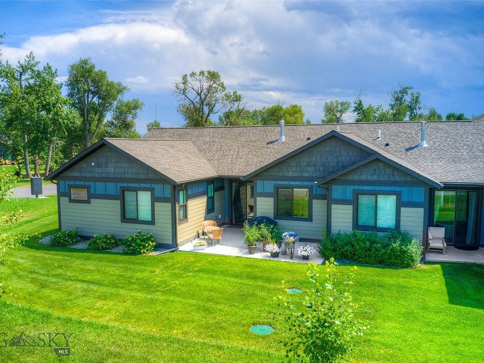 One level living in this beautiful end unit! This open floor plan condo is 1691 sq ft with 3 beds/2 baths. The interior of this home boasts 9 ft ceiling heights and vaulted ceilings. Light gray painted cabinets are complemented by desirable Quartz countertops, durable laminate plank flooring, and a beautifully tiled master bath! The primary suite also includes a shiplap wall and barn door: An extended back patio along with an oversized 2 car garage with taller than average ceilings providing lots of room for storage. HOA dues cover weekly mowing, snow removal, garbage, water, sewer and all exterior maintenance. Just a half mile from the Erwin Fishing Bridge where you can enjoy 70+ acres of state land bordering the beautiful Gallatin River. Easy commute with access to I-90 less than 2 miles away. A bit of country yet close to town!