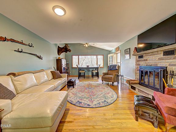 Enjoy seasonal river views of the Wallenpaupack River from this absolutely gorgeous cabin included with a 2nd parcel, in the heart of the Pocono Mountains! Escape to this private, 2 bedroom, 2 bath rustic home with modern touches and lake-rights to Lake Wallenpaupack. The interior features a full finished lower level with walkout access, open living/dining combo with gorgeous seasonal water views from the picture window, a potbelly wood-burning fireplace in the lower level, paved driveway, and maintenance free composite decking. Enjoy boating on Lake Wallenpaupack, and fishing the Wallenpaupack River (just 300 feet from your front door) by day, and retreat back to your cabin to roast marshmallows by the fire in the evening! This lake-right home resides in Indian Rocks community with beach area on Lake Wallenpaupack, private swimming pool, fitness center, clubhouse, 24-hour public safety, community water system, outdoor recreation courts and more!