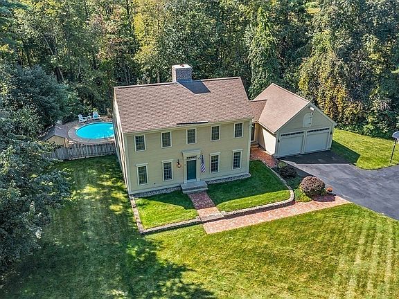 This home exudes pride of ownership - perfectly blending old world charm with modern amenities. This stunning 4-bed/2.5 bath residence is nestled on a spacious 3-acre lot, offering both privacy and room to roam. The house is an entertainer's paradise! Enjoy endless, fun gatherings with the inviting inground pool w/mahogany deck as the centerpiece of your outdoor oasis. The kitchen features KitchenAid appliances, ample counter space, and a center island, making it perfect for cooking and entertaining. A seven-foot-wide reproduction colonial fireplace with exposed brick in the center hall and wainscoting add to the character. Newly refinished wide pine floors throughout both levels. Upstairs you will find a primary suite with double closets and private bath. 3 large spacious bedrooms complete the 2nd floor. Home has a 6-zone irrigation system, generator connection, beautiful flagstone walls, brick walkways and granite steps. Walking distance to schools, shopping and the center of town.