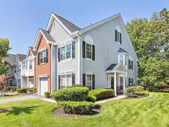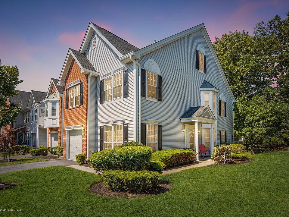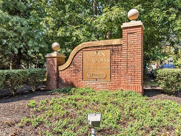 Welcome home to this beautiful end unit townhome located in desirable Hidden Meadows! This home boasts three spacious bedrooms, two and a half bathrooms and an office. Sun-drenched formal living room features palatial arched windows, gleaming hardwood floors with a woodburning fireplace and vaulted ceilings. Open and airy formal dining room with bay window and eat-in kitchen complete the main living area. Sizeable master suite features his and her closets and an updated bathroom with jacuzzi tub. Relax on a private fenced deck, enjoy direct entry garage and convenient second floor laundry room. This community offers swimming, tennis, basketball court, bocce ball court, playground and clubhouse. Close to train, Garden State Parkway, Route 18, shopping and beaches. New roof an