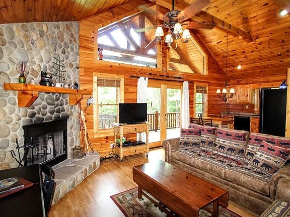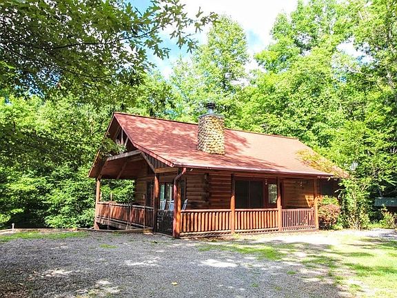 Absolutely the perfect log cabin with wood burning fireplace in the open and airy great room with exposed wood beams sitting on a quiet wooded lot with great and easy access right off a paved state road with covered decking and porch space plus lots of room to park and turn around, great picnic area down by the branch,out building for extra storage and comes furnished and ready to go plus good rental history!