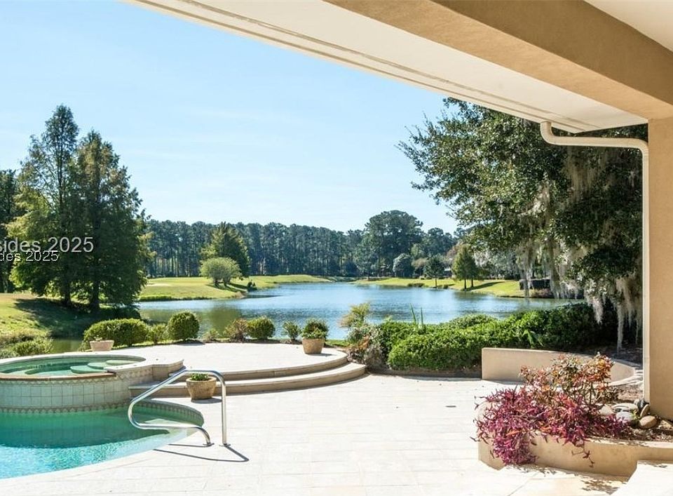 A rare opportunity to own one of Del Webb’s original models. The Aspen in Sun City Hilton Head! This spacious 2,773 sq. ft. home offers 2 bedrooms, 2.5 bathrooms, and stunning views of the Okatie Golf Course and lagoon. Inside, you'll find custom marble floors, a gourmet kitchen with cherry cabinets, gas cooktop, double ovens, skylights, plantation shutters, and a cozy gas fireplace. The den and second bedroom feature custom built-ins. An expanded 3-car garage provides ample storage. Outside, enjoy a large back porch with beautiful hardscapes, a summer kitchen, and a custom pool and hot tub—perfect for Lowcountry living!