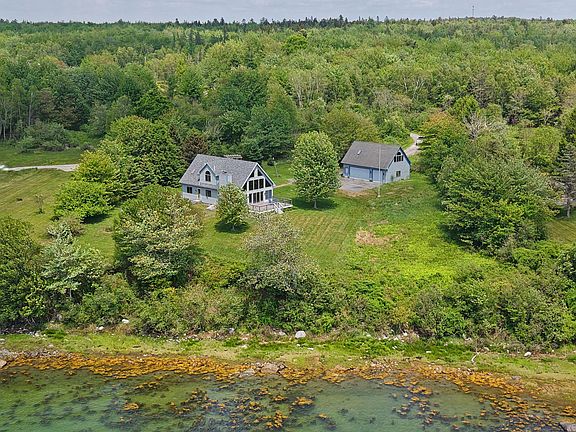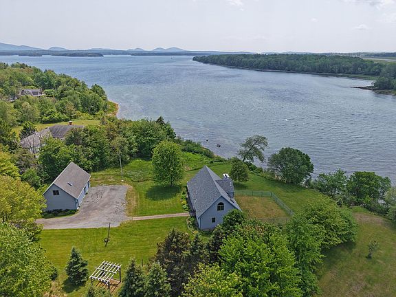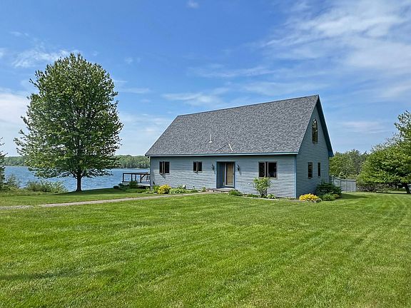 Waterfront Home with Mountain Views! This well-constructed property features 3 bedrooms, 2 bathrooms, and a 3-car garage, along with a private front deck. The first floor boasts an open floor plan, an eat-in kitchen, a dining area with cathedral ceilings, and a living room with a wood fireplace. It also includes 2 bedrooms, a full bathroom, and a laundry area on the first floor. The second level is dedicated to a spacious primary bedroom equipped with a private bathroom. Situated on 2.9 beautifully landscaped acres, this stunning property offers 249 feet of waterfront and plenty of privacy.