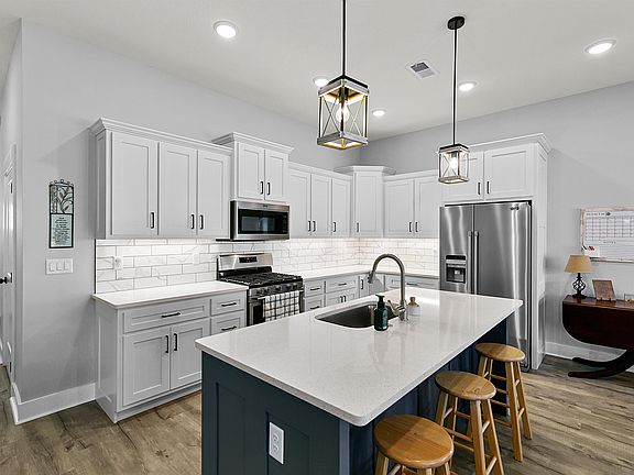 LIKE NEW 3 bedroom 2 bath hardie board and brick modern farmhouse style home located in the new Kingston Creek Subdivision. This open concept floorplan home features 10 ft. ceilings in the foyer, kitchen and great room, two interior barn doors, two large walk in closets, tile shower, upgraded flooring, stainless kitchen appliances, under counter kitchen cabinet lighting, built in wood shelves, 2" fauxwood blinds, surround sound, lawn irrigation system, natural gas line on the back porch to use for your propane grill (no more refilling the gas grill tanks!) and much more! All information is deemed accurate but not warranted by the seller, agent or company. All square footages including room sizes should be verified by a licensed appraiser. This document is to be used for reference only and is not a valid part of the sales contract.