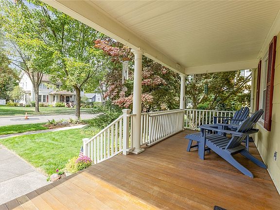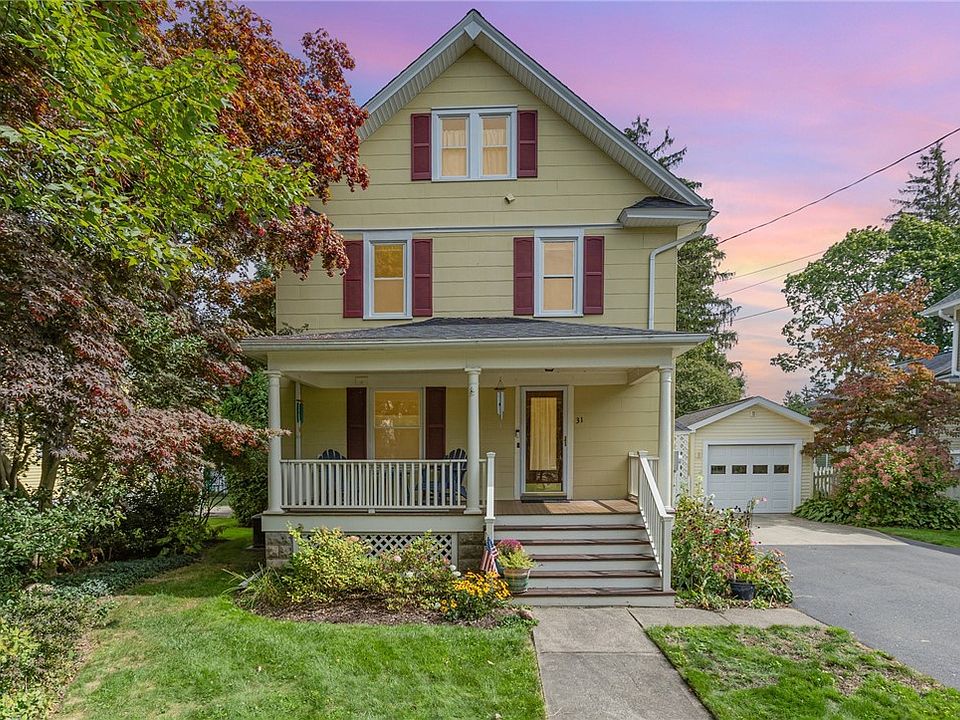 ELEGANT VILLAGE OF FAIRPORT HOME WITH 3 BEDROOMS AND 1.5 BATHROOMS ON LOW FAIRPORT ELECTRIC! FAIRPORT SCHOOLS! WELCOMING WALK UP CHARM WITH NEIGHBOR NODDING GATHERING PORCH! OPEN FOYER TO LIVING ROOM FLOWING TO DINING ROOM! LARGE KITCHEN WITH SUN SPACE CONNECTING TO DECK WITH VIEW OF A PARK LIKE YARD! BEAUTIFUL PERIOD TRIM, MOLDINGS, AND STAIRCASE! IMMACULATE HARDWOOD FLOORS! UPDATED BATHROOMS AND KITCHEN! WALKUP UNFINISHED ATTIC HAD BAFFLES THEN BLOWN IN INSULATION AND BATTEN INSULATION INSTALLED, MAKING THE ATTIC VERY ENERGY EFFICIENT! NEWER 1.5 CAR GARAGE WITH CONCRETE/ASPHALT DOUBLE WIDE DRIVEWAY! PEACEFUL BACKYARD BEAUTY WITH SHED! DRY BASEMENT WITH EVERDRY BATTERY BACK UP SYSTEM WITH TRANSFERABLE WARRANTY, AND OF COURSE YOU WOULD BE TAKING ADVANTAGE OF THE AMENITIES OF THE FAIRPORT VILLAGE AND TOWN OF PERINTON; PARKS AND RECS, MUSIC, MARKETS, FESTIVAL'S, ENTERTAINMENT, PARKS, AND QUALITY OF LIFE! COME AND ENJOY FAIRPORT/PERINTON!.... PRE INSPECTION REPORT IN ADDENDUMS! SHOWINGS START SUNDAY, 9/21/25 AT 10:00AM. OPEN HOUSES ON TUESDAY 9/23/25(PENDING STREET PAVING) FROM 4:00PM TO 6:30PM AND ON THURSDAY 9/25/25 FROM 4:00PM TO 6:30PM. OFFERS ARE DUE BY TUESDAY, 9/30/25 AT 11:00AM..... PLEASE NOTE: VILLAGE STREET PAVING BEGINS MONDAY 9/22 AND INTO 9/23 ARE TENTATIVE DAYS.... SO YOU ALSO CAN ENJOY A NEWLY PAVED STREET!! PULL ALL THE WAY INTO THE DRIVEWAY TO PARK PLEASE FOR SHOWINGS.