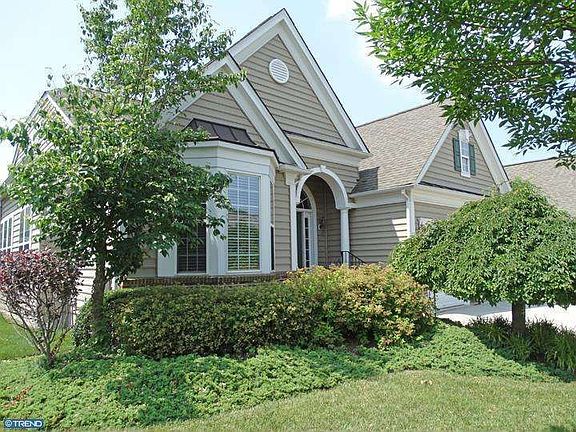 Enjoy a carefree lifestyle when you purchase this lovely "Laurel" home in Traditions at Washington Crossing, Upper Makefield's 55+ community. You will fall in love with this immaculately-maintained home with its open floor plan, neutral decor, and sweeping, oak staircase in the foyer. The main floor boasts a spacious combination Living and Dining Room, perfect for entertaining; a Study with coffered ceiling and custom mahogany built-ins; two-story, bright Family Room with gas log fireplace; gourmet Kitchen and expanded Breakfast Room with quartz countertops, cherry cabinetry (several with glass facade) and upgraded stainless steel appliances; generous Laundry Room with ceramic tile, ample cabinets and large utility sink. Enjoy your morning coffee or beautiful sunsets on the inviting, maintenance-free deck with southern exposure, built-in bench seating and retractable, powered awning. Rounding out the main level is the Owner's Suite which features upgraded ceramic tile, seamless shower, garden tub, separate toilet room and higher vanity in its Bathroom. Upstairs are two large Bedrooms, full Bath and cozy open Loft. The lower level features extra high ceilings (9'), rough-in plumbing for a full Bathroom and outside entrance. Additional upgrades include a custom paver walkway in the front; lawn irrigation system; hardwood floors; custom window treatments; ceiling fans; and high hats throughout. The community offers a gorgeous clubhouse, indoor and outdor pools, fitness centre, bocce and tennis courts and quiet walking trails. 55+ never looked so good!
