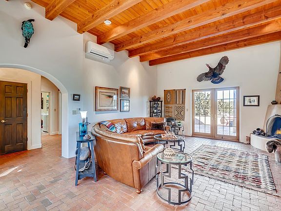 A delightful custom designed and built pueblo home, with no steps, and recent upgrades adding grace and energy efficiency, plus a tall, deep and wide over-sized heated 2 car garage w shop space. Santa Fe ambiance and character throughout, flowing to wonderful outside spaces ready to entertain on. New $20,000 roof & boiler both in 2018 with warranties, in-floor radiant heat with new mini splits for cooling, new fenced landscaped yards and gardens front and back, in-ground water cistern, storage shed, plus a lovely new working greenhouse! There is even a putting green in the backyard. Surrounded by trees adjoining a "greenbelt" and with mountain views. 2nd bedroom has a very large closet with a sink, upper & lower cabinets, as the original owner used this space as a darkroom. Extra wide hallway & doors for the south bedroom & bathroom. Convenient Eldorado amenities - neighborhood shopping centers, County library, Senior Center, bank, K-8 school , Eldorado Community Center, 4,000 acre Conservation area, swimming pool, tennis, basketball/pickle ball courts, dog park, horse stables & more....