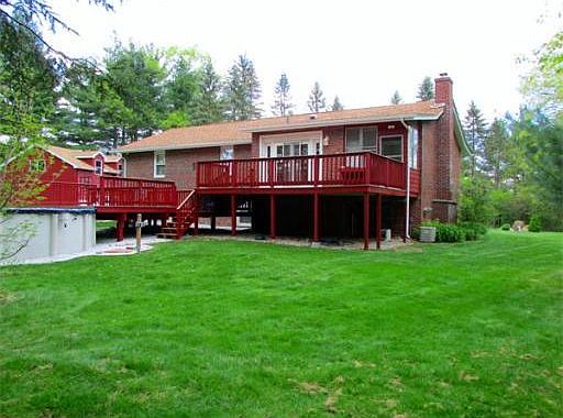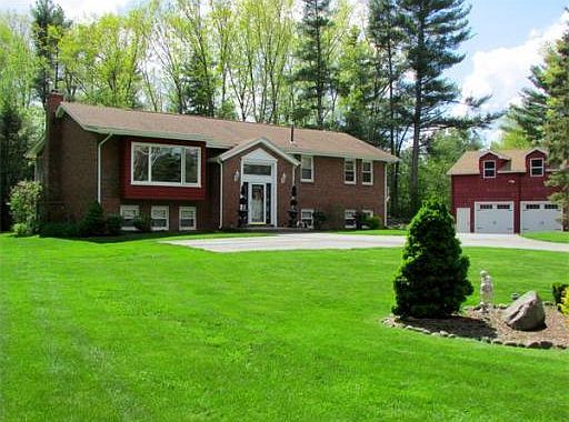 Beautiful split foyer is on 3 acres of park like grounds in newer subdivision.This house has a beautiful foyer, newly remodeled kitchen with Maple cabinets and ceramic flooring and sliders to a two tiered deck off the back. Three good sized bedrooms on main level with hardwood flooring. Masterbath has been redone with a ceramic tile walk in shower. The lower level has a great family room with a pellet stove, a half a bath, a bedroom and a kids playroom. House has in-law potential. Home offers a security system, Professional Outdoor Lighting and sprinkler system. There is a 3 car garage which offers parking for up to 6 cars.