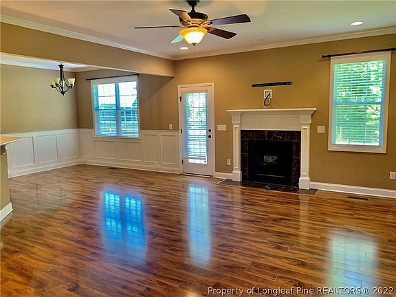Forest Ridge- 3 bedrooms, 2.5 bath. Open family room to kitchen and eat in area, laminate floors, granite counters and stainless appliances, large oversized bonus room, downstairs master suite, garden tub & separate shower, tiled floors in kitchen & baths, high ceilings gives a great open feel, upgraded trim & molding. Double garage. Privacy fenced backyard with tree line, deck and patio area with fire pit. Minutes to Bragg. Nice cul-de-sac lot.