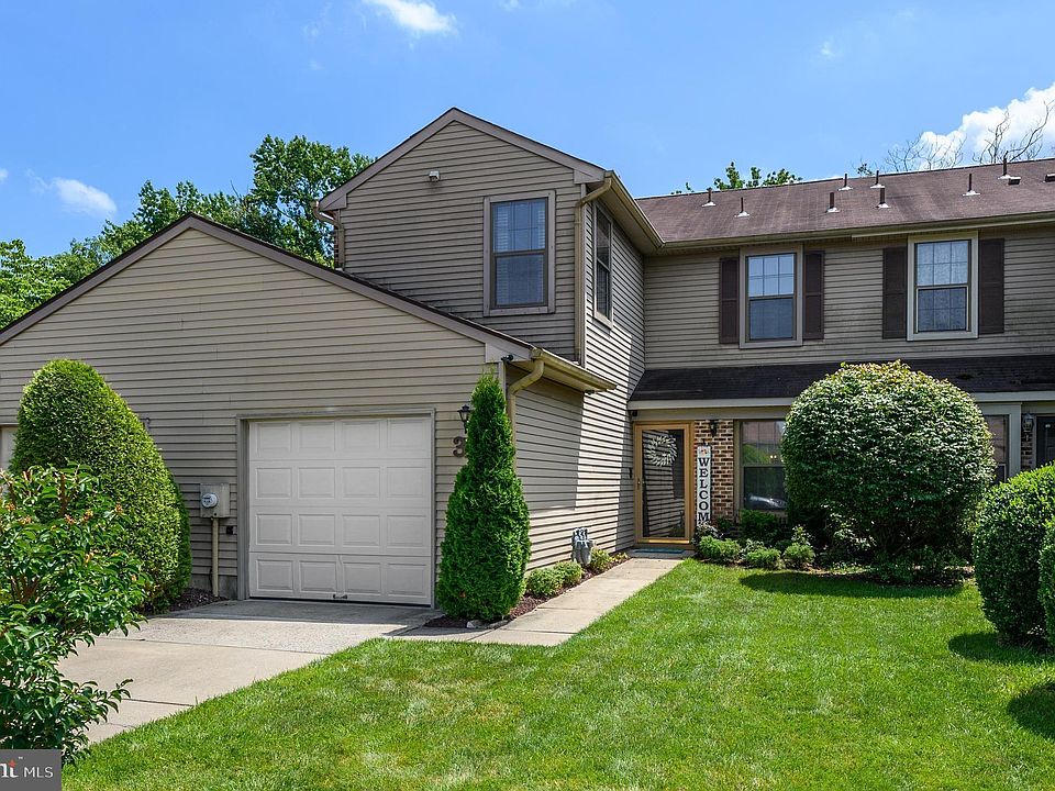MULTIPLE OFFERS, NO MORE SHOWINGS. Welcome home to this gorgeous 2 bedroom 2.5 bath townhome in Mount Laurel’s Birchfield! This home is completely move in ready. As you enter, you’ll notice the upgraded vinyl plank flooring throughout the main level. The kitchen has been updated to include white cabinetry, stacked stone backsplash, stainless steel appliance package, and a large double door pantry. The large, open living and dining area spans the entire back of the home and is anchored by a gorgeous floor to ceiling stone fireplace with rustic wood mantle. The main level is completed by a stylish powder room with updated vanity and fixtures. Upstairs, there are 2 large bedrooms with attached bathrooms. The primary suite overlooks the tree lined backyard and has a huge wall to wall closet with gorgeous frosted glass and gold doors. The attached bathroom has been upgraded with new tile backsplash, vinyl flooring and upgraded fixtures and linen closet. The double vanity with extra seating offers ample storage and space to get ready. The second bedroom is spacious, with a walk in closet and the hall bathroom has an updated vanity, updated flooring and lighting. The backyard feels welcoming and private, backing to woods. The deck is a great place to relax and entertain. Enjoy extra storage and parking space with your attached one car garage. This is an absolutely stunning home in a centrally located community with low HOA fees, community pool, tennis courts, and basketball courts. Conveniently located to 295, NJ Turnpike and other major roads. Come see this one now before it’s gone!