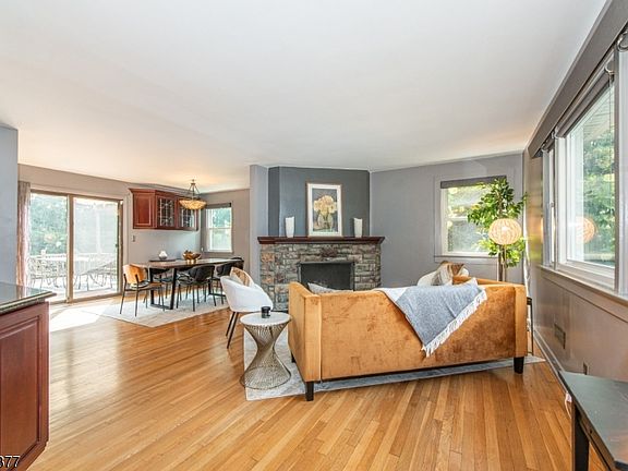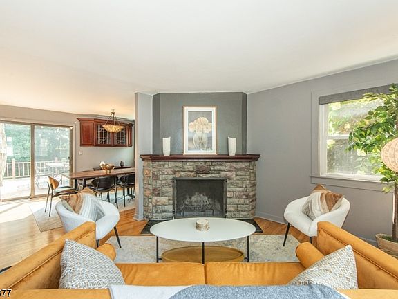 Tucked away on a dead-end street near downtown Verona, this spacious home is brimming w custom touches & delightful surprises. Step into the living room, where a stunning stone fireplace takes center stage, flanked by a built-in bar w elegant leaded glass cabinetry. The adjacent open dining room flows into your very own backyard oasis. Picture hosting BBQs under twinkling lights on the oversized deck, kicking around a soccer ball on the expansive lawn, or indulging in a relaxing sauna before slipping into the jacuzzi! A separate front entrance leads to a spacious mudroom w abundant storage & custom closets. The EIK is a chef's delight with ample workspace, a built-in table, and open flow into a cozy sitting room that invites company while you cook. A stylish powder room features a custom Porcelanosa stone sink. Upstairs, the primary bedrm easily fits a king-size bed w plenty of room to spare & the large custom closets are true showstoppers! Bed two is big enough to share, w a large sleeping area, separate flex space & a custom WIC. The full bath is beautifully appointed w a skylight, Porcelanosa stone sink & multi-function spa shower. The bsmnt surprises w high ceilings, a family rm, laundry area, workshop, & ample storage. Add'l features incl central air, forced hot air, generator-ready panel, a garage w loft & a double-wide drive. Just blocks from Verona's vibrant shops & eateries, NYC trans, top-rated schools, public library, & picturesque Verona Park, this is a must see.