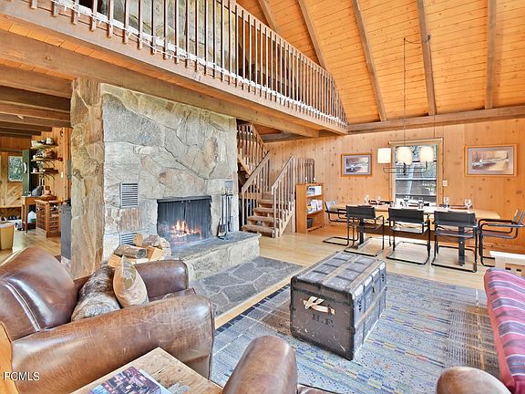 Step inside to a spacious great room featuring floor-to-ceiling windows that showcase breathtaking views of the surrounding landscape. The room is anchored by a stunning stone centerpiece fireplace, complemented by an additional wood stove, creating a warm and inviting atmosphere. A large loft provides extra space, perfect for a home office, guest quarters, or a cozy reading nook.