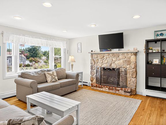 Discover coastal living on Easy Street! This delightful 3-bedroom, 1-bath cottage is just a short stroll from the sandy shores of Nantucket Sound. Inside, you'll find hardwood floors throughout, a sun-filled kitchen with dining area, and a welcoming living room with a bay window and a stone ventless gas fireplace. A bright sunroom opens directly to the spacious deck, creating the perfect flow for indoor-outdoor living. Step outside to enjoy a private backyard designed for relaxation and fun--featuring an outdoor shower to rinse off after the beach, a fenced yard for privacy, and two storage sheds for all your gear. Recent updates include new shingles and a new roof in 2024, along with a gas fireplace offering both style and peace of mind. With restaurants and local amenities close by, this cottage is the perfect blend of coastal charm and everyday convenience.