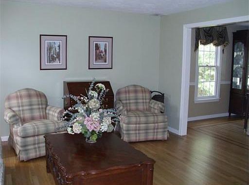 Great colonial in a neighborhood on a large wooded lot with a shed for storage. Hardwood throughout the first floor. Updated kitchen with a center island and plenty of cabinets. Spacious family room with brick fireplace open to the kitchen. The master bedroom has a vaulted ceiling, walk in closet and updated vanity in the master bath. L shaped finished room in the basement, plenty of room for a play area, exercise area and additional family room. Title V has been approved. Central air for those upcoming summer months. Seller is building and can close now and lease back or close approx. August 1st and will give a 30 day notice prior to closing. Their home is half completed now. One Year Core Home Warranty for the buyer.