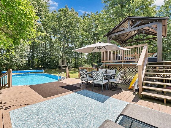 Bedford, NH 03110-You have been waiting for this home to come on the market and now you have the opportunity to own it. There is so much to love about this home, you will be amazed when you see it in person. The back boundary is a large conservation area that will never change, what privacy. The first floor is well planned with a good sized kitchen opening up to the living room with built-in bookshelves and a woodstove insert. The living room opens up the the large and beautiful family room which is where you will host your "game day" events, and other large gatherings making this the highlight of the first floor. Off the family room is the open deck that leads to the crystal blue pool and right now, that pool is the place to be so you can keep cool. If you enjoy having dinner at the dining room table, you will love this space, it's perfect for nightly get togethers. Do you work remotely or would like a room to read and enjoy "quiet" time, the den is off the beaten path and ready for you to set up shop. At the end of the day you will head to the second floor where the rooms are spacious, the baths are ample and you will find rest easy in your private bedroom. The primary suite is over the attached 3-car garage which makes this a complete oasis for you to have and enjoy. If you live with night owls there is a full basement that is "finished" with a pool table, a foosball table and perfect for fun, loud, late night activities. We can see this home starting at 9:30 on 7/13/2024
