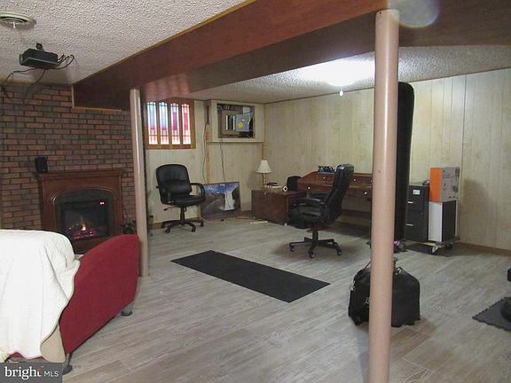 Tucked away in a little niche known as Forest Oaks is this gem. This home is situated on a 1 acre parcel of land with flowering trees and shrubs. The large eat-in kitchen offers access to a large deck for those nights of grilling and chilling! The kitchen has wood cabinets and flooring, a large stainless steel refrigerator/freezer, pantry, double sink, dishwasher, and gas stove. Flooring consists of hardwood, carpet, laminated wood and tile. The two large bedrooms are paneled and carpeted. This home offers two bathrooms, a main and one in bedroom 1. The large living room has a bay window to the front of the home, full decorative brick wall and wood burning fireplace, paneled walls and carpeted flooring. The second bedroom has drywall and carpeted flooring. Access to the attic is by pull down steps in the hallway. This home offers a full great room size basement for your enjoyment. It has access inside and outside of the home, which is through bilko doors. There is a partial decorative brick wall surrounding the electric fireplace . Off the main part of this room is an area for the washer/dryer and a corridor leading to a storage room, which could serve as a sitting room/bedroom, maybe add a kitchen???? Very nice size. There are two nice size sheds (one a little cottage) and the other quanset type, also nice size. Located nearby is a recreation area with ball park and playground for the kids.