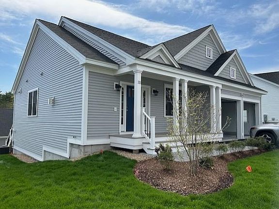 The Bearberry Biscotti Cape is one of our most popular floor plans at The Cliffs at Evergreen, Auburn, NH’s very first 55+ community. This 1999sq ft craftsman cape offers a first floor primary bedroom suite with an extra large walk in closet and ensuite bath. An optional gas fireplace accents the living room. The kitchen and dining room offer great gathering space. There's ample extra storage in the kitchen island and pantry. Walk directly from the dining room to your private sunroom with central AC throughout for the summer months. A wonderful screen porch is off the sunroom. a 1/2 bath rounds out the first floor. Direct access 2 car garage is included! Upstairs you'll find the guest bedroom and the second full bath. The Cliffs at Evergreen community has a custom designed clubhouse also under construction with a great hall, kitchen, large exercise room and more. Pickleball and bocce ball plus direct access to the Rockingham Recreational Rail Trail provide ample outdoor activities. Stroll down to Massabesic Lake for picturesque views and have the option to store your RV for when life takes you on further journeys! All of this is brought to you by Chinburg Builders. This multi-year EPA award winning team delivers a smart home package backed by their energy star certifications and commitment to building excellence! *Site is an active construction zone. Buyers are not allowed on site outside of scheduled open house times.* Please call to schedule a private showing*