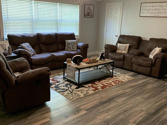 Adorable Full Brick Ranch! It's Immaculate, has a Great Price and is Move-In Ready! It features approx. 1559 sq. ft. of living space, beautiful hardwood, tile and crown molding throughout. It boasts 3 bedrooms, 1.5 baths, a large living room, large family room with a gas fireplace, kitchen, and dining room. Outside you will find a covered front porch, and a small back deck accessible from the dining area. Your favorite outdoor feature is sure to be the roomy side veranda connected to an oversized double carport for parking or would also be an awesome area for hosting a Barbecue for family and friends. This home sits on approx. 1 level acre with mature trees and I should mention it has an almost new storage building for your lawn tractor and tools. This charming property is priced to sell and is ready to welcome new owners. It could be you, so schedule your appointment today!