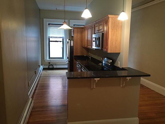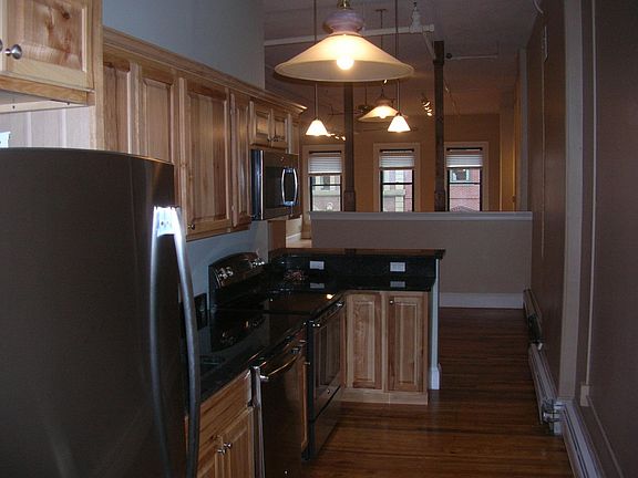 Available for rent is a large loft apartment at 31 Exchange Street in Portland, Maine. This third floor, top floor, walk up apartment is an open floor plan. The apartment contains hardwood floors, high ceilings, ceiling fans, track lighting and walk in closet. The apartment enjoys re-finished hardwood flooring, tile flooring in the bathroom, stainless steel kitchen appliances which include electric stove, refrigerator, micro wave and dishwasher, garbage disposal, many cabinets, built in kitchen bar, granite counter tops along with a washer and dryer hook up in the bathroom. The unit was freshly painted. No Pets! Non-smoking building! It is a great location for someone that wants to be in the heart of Portland's Old Port District. Large Studio Apartment which includes the utilities of heat, electricity, hot water, water and sewer. No application fee. Fee for background check of $55.